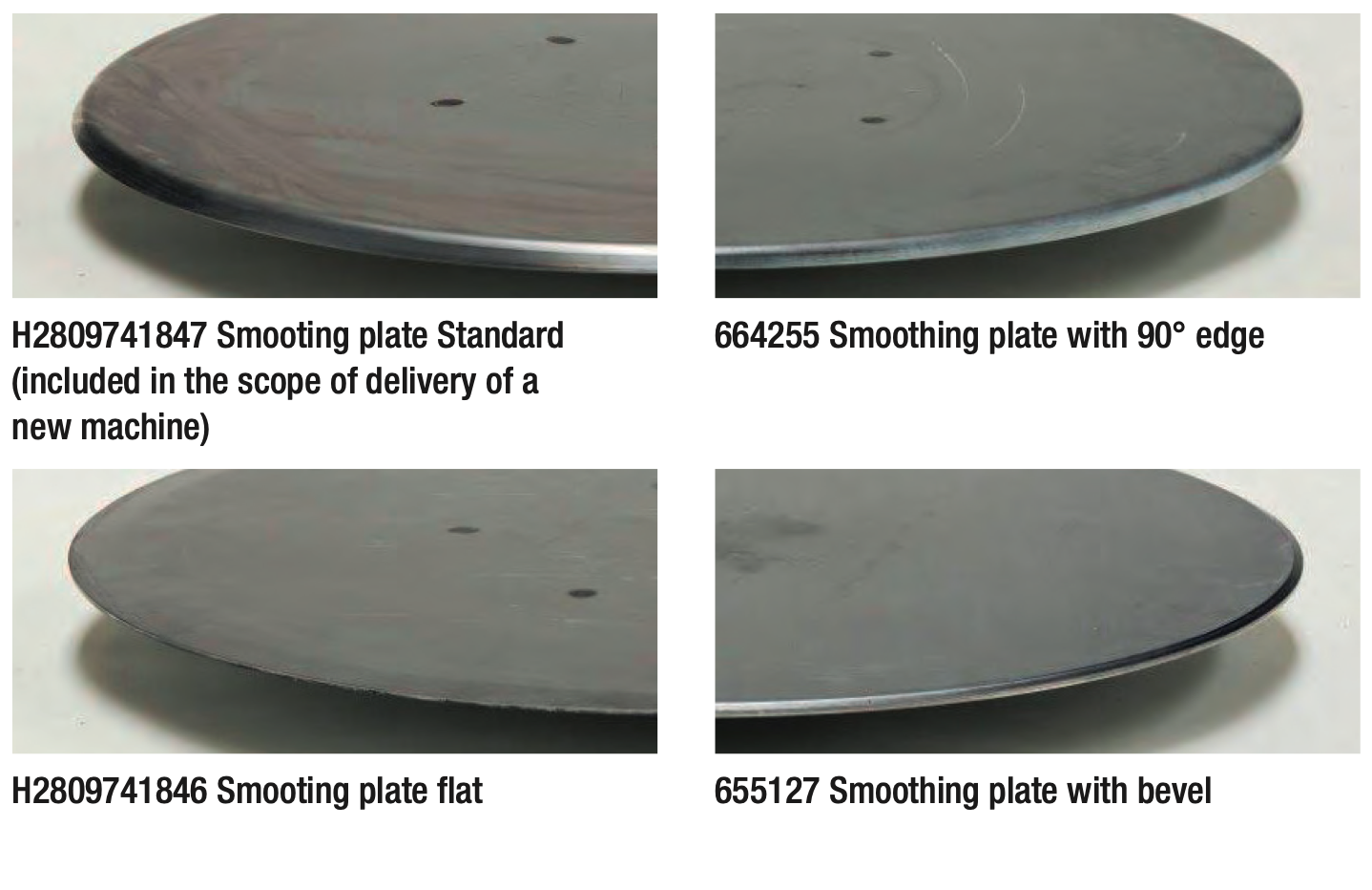 • Quick and easy replacement of the smoothing plate using 4 wing nuts